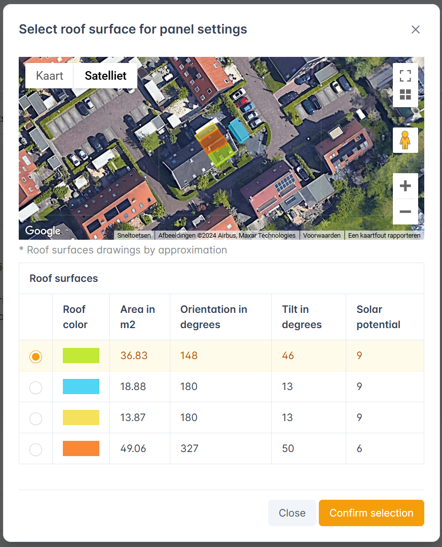Verkeerde gegevens zoals onjuiste dakrichting of selectie van het verkeerde oppervlak, bijvoorbeeld de cv-ketel, komen vaak voor en leiden tot problemen. De automatische herkenning van dakoppervlakken zorgt ervoor dat dit verleden tijd is.